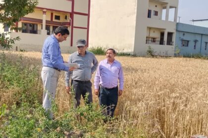 उत्तराखंड देहरादून: प्रधानमंत्री फसल बीमा योजनान्तर्गत फसलो की उपज का अनुमान लगाने हेतु तहसील देहरादून के राजस्व ग्राम मेहूवालामाफी में पहुंचे अपर जिलाधिकारी।