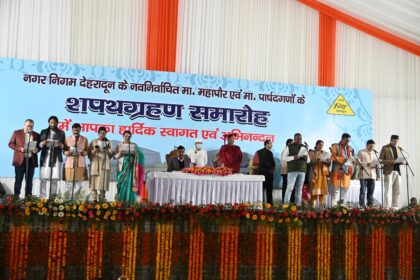 देहरादून नगर निगम के नव निर्वाचित महापौर सौरभ थपलियाल सहित 100 पार्षदगणों ने ली अपने पद की शपथ