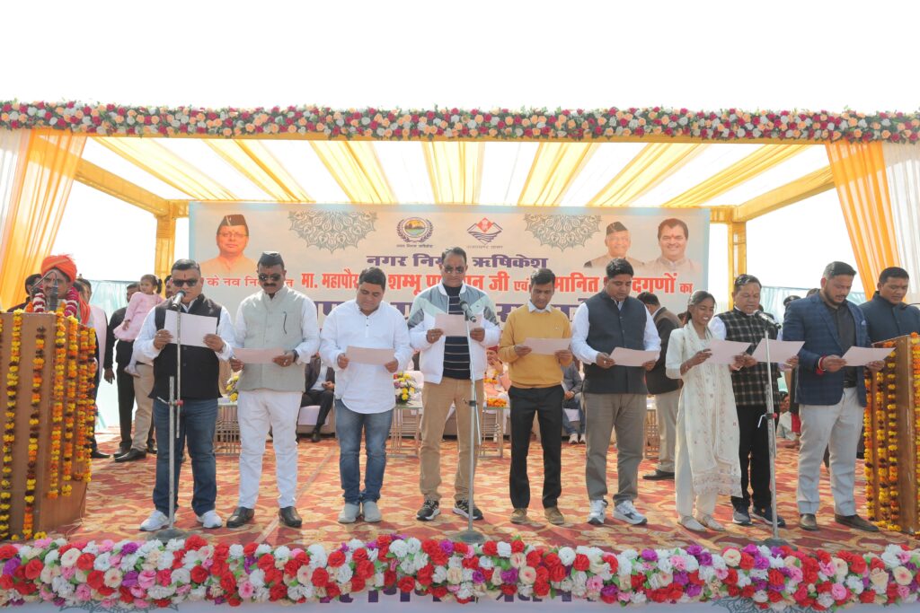 ऋषिकेश नगर निगम के नव निर्वाचित महापौर शंभू पासवान सहित 40 पार्षदगणों ने ली अपने पद की शपथ।