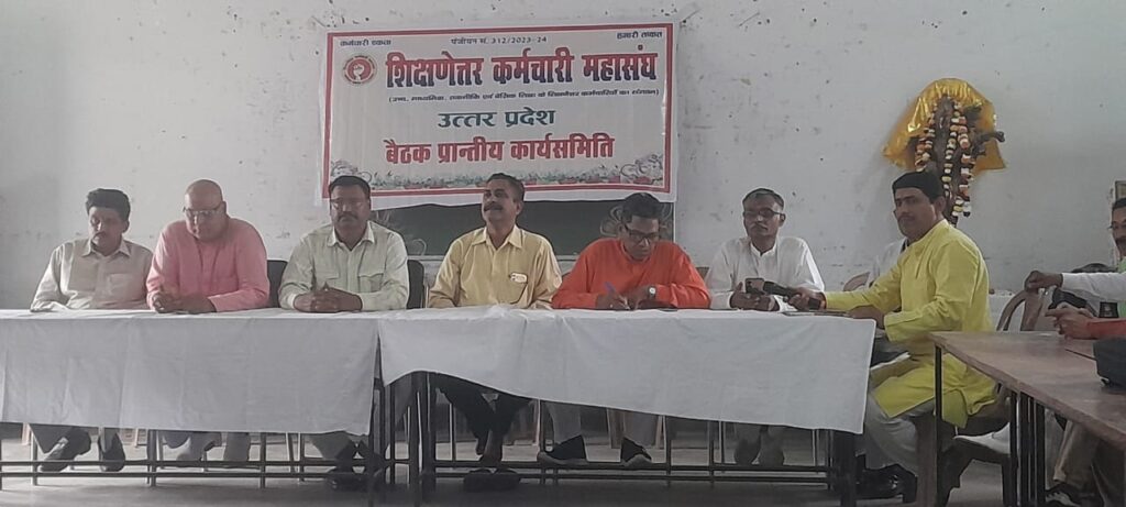 वीकली आई न्यूज,अभयानंद शुक्ल, (लखनऊ) उच्च, माध्यमिक, तकनीकि एवं बेसिक शिक्षा के शिक्षणेतर कर्मचारियों के संगठन शिक्षणेतर कर्मचारी महासंघ की प्रदेश कार्यसमिति की बैठक प्रदेश अध्यक्ष विजय कुमार द्विवेदी की अध्यक्षता में हुई। एपी सेन इंटर कालेज में हुई इस बैठक का संचालन प्रदेश महासचिव अवधेश मिश्र ने किया।